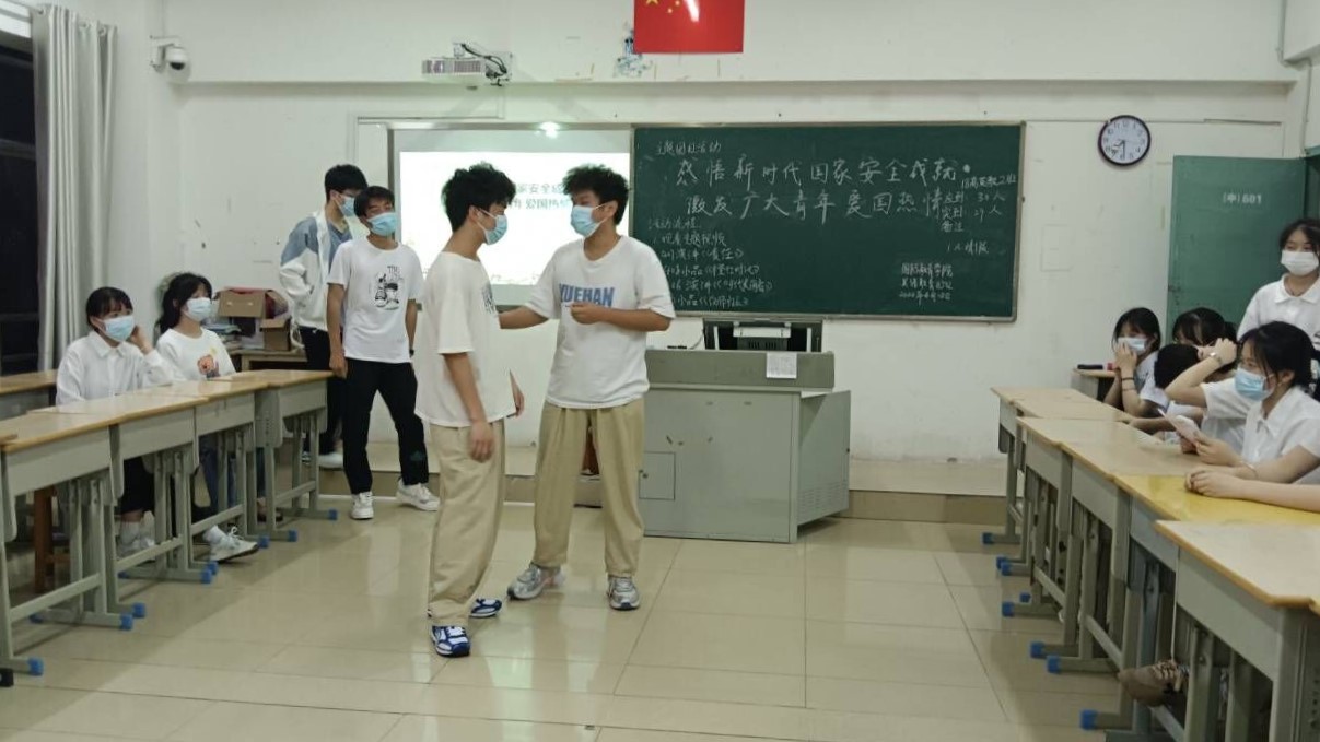 本站讯(国际教育学院 温雯丽)为深入学习贯彻习近平总书记总体国家安全观,进一步增强青年学子国家安全意识,按校团委要求,国际教育学院于4月12日晚在全院开展了“感悟新时代国家安全成就,激发广大青年爱国热情”主题团日活动。