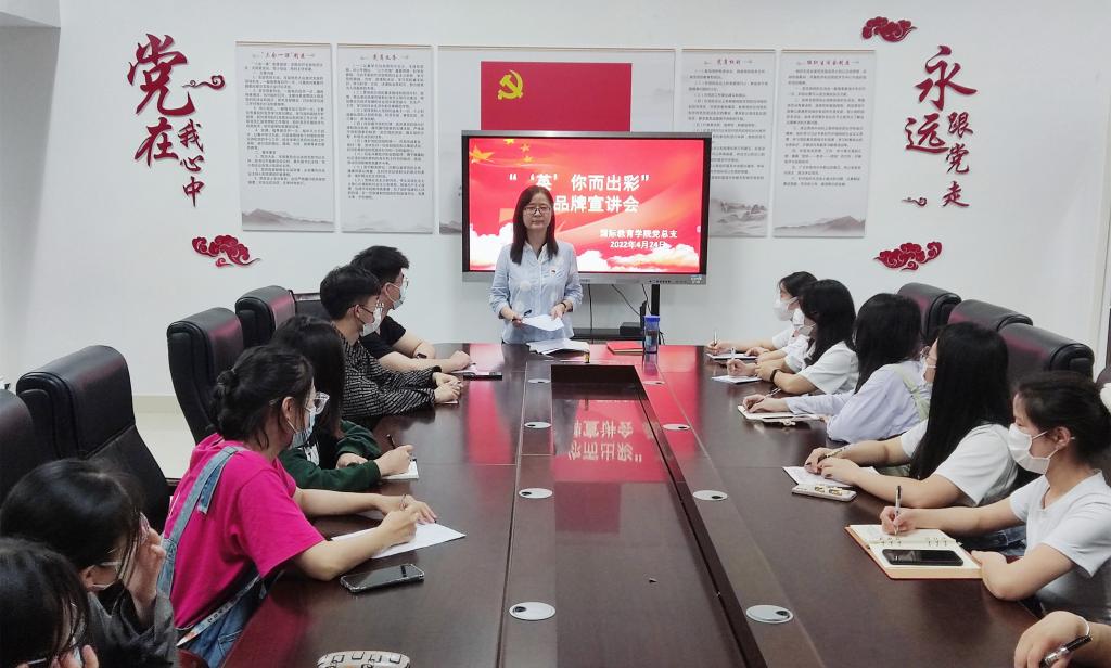 本站讯(国际教育学院 杨琨 周海燕)为深入打磨高质量党建品牌,提升基层党组织服务能力和组织形象,提高党建品牌在学生中的认知度,强化示范引领效能,国际教育学院党总支于4月24日晚在科技综合楼401开展以“‘英’你而出彩,一起向未来”为主题的党建品牌宣讲会。宣讲会由我院党总支书记刘海云主讲,所有在校班级团支书及副班长参会。