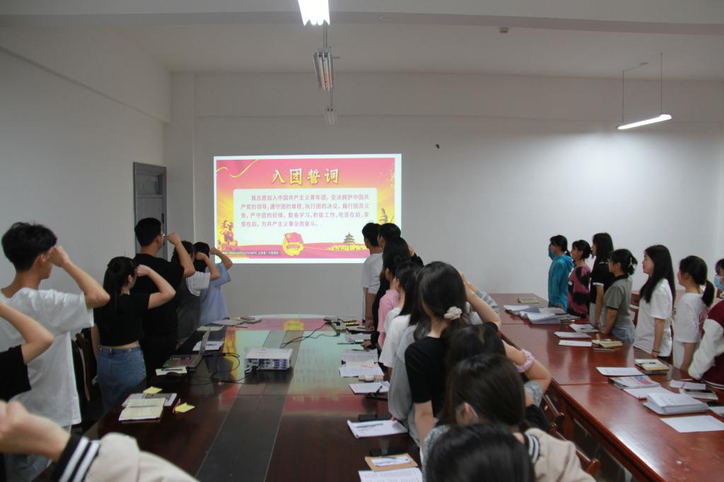 全体团员在鲜红的团旗前,再次许下“勤奋学习、积极工作、……为共产主义事业奋斗”的铮铮誓言,座谈会在洪亮的《光荣啊,中国共青团!》歌声中结束。