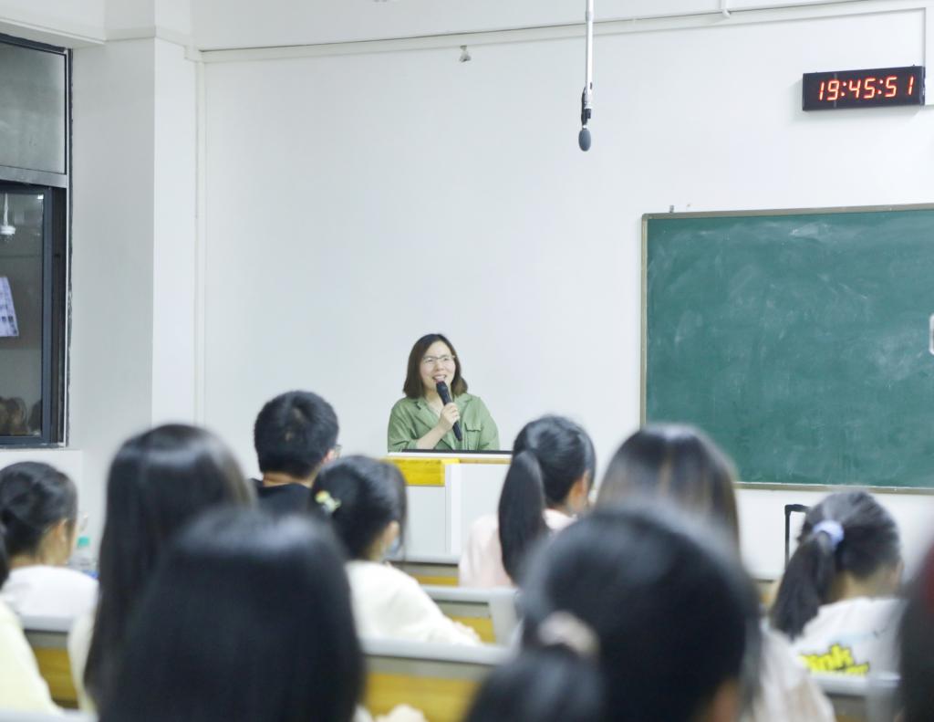 吴霞在讲授过程中围绕“新媒体时代下的新闻与写作”这一主题,从“什么是新闻”,“如何培养新闻敏感”和“新闻写作的几个关键词”三个方面展开论述,并详细介绍了新闻的六要素,新闻的特点以及新闻的结构,鼓励大家多读多看多学习,把握重要时间节点,提前策划新闻。她指出,当一个好的记者,需要增强四个力——脚力、眼力、脑力、笔力。新闻要“新”、正文要“满”、用词要“准”。