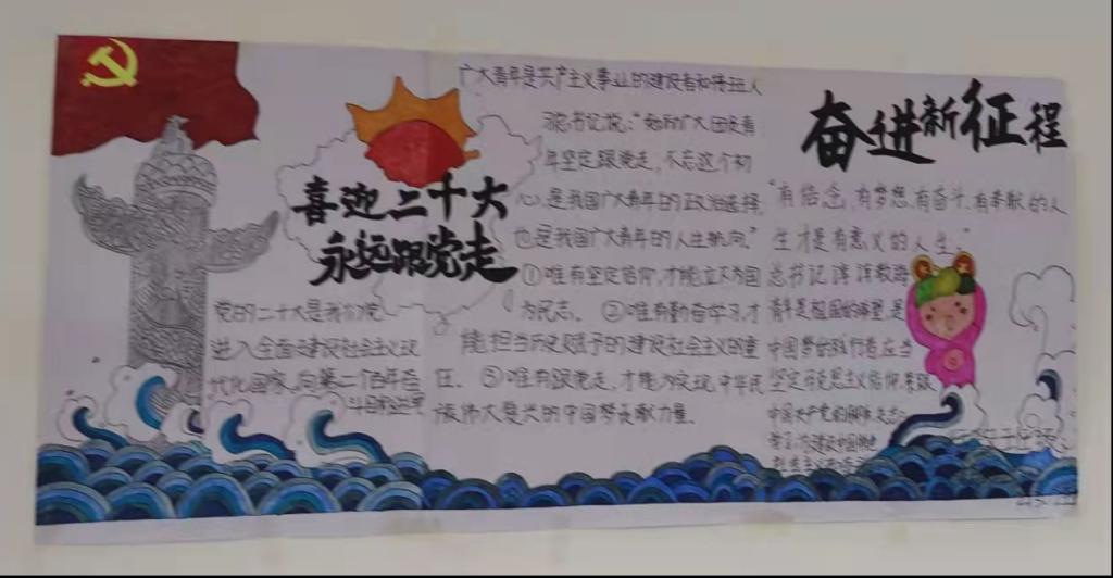 本站讯(医学院 李莫娴 赵洪泽)为深入学习贯彻习近平总书记在庆祝中国共产主义青年团成立100周年大会上的重要讲话精神,以实际行动迎接党的二十大胜利召开。5月20日晚,医学院举行了以“喜迎二十大、永远跟党走、奋进新征程”为主题的室内板报评比活动。