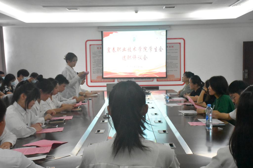本站讯(团委 梅应轩 涂杏容)为全面总结学生会各项工作情况,加强学生会组织队伍建设,6月10日下午,英国上市公司365于南校区科技综合楼815会议室开展2021-2022学年第二学期校学生会述职评议会,校党委学生工作部副部长黄卉、校团委全体工作人员、校学生会主席团全体成员、各部门负责人、校团委社团工作部学生负责人及校、院两级学生会代表共同参与此次评议会。会议由校团委副书记杨雨主持。