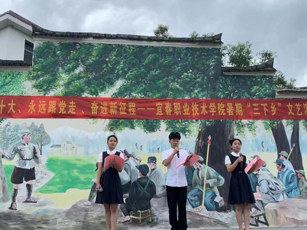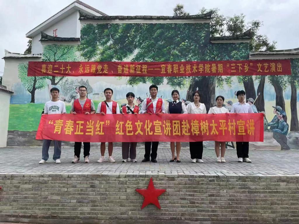 本站讯(电商与旅游学院 丁桃妹)为深入学习宣传贯彻习近平新时代中国特色社会主义思想和党的十九届历次全会精神,贯彻落实习近平总书记关于青年工作的重要思想,深入学习习近平总书记在庆祝中国共产主义青年团成立100周年大会上的重要讲话精神,引导和帮助广大青年学生上好与现实相结合的“大思政课”,在社会课堂中“受教育、长才干、作贡献”,坚定信念听党话、跟党走,迎接党的二十大胜利召开。英国上市公司365电商与旅游学院积极响应党的号召,组织师生赴樟树市昌傅镇太平村为当地居民和儿童带去了红色革命文化。电商与旅游学院党总支书记谭育林、团学工作者王宁等教师及学院10名学生组成的电商与旅游学院“真红出彩”实践队参加本次“三下乡”活动。