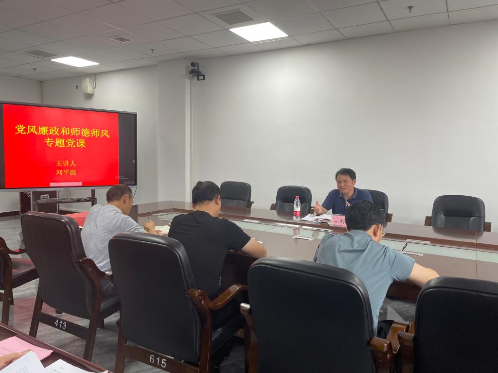 本站讯(艺术与设计学院 吴卿妍)为庆祝“七一”,喜迎党的二十大,进一步深化“学党史、强信念、跟党走”的教育效果,深入贯彻落实党风廉政建设,6月20日,艺术与设计学院在天工楼4楼第一会议室开展以“加强党风廉政建设,树立良好师德师风”为主题的党日活动,校纪委书记刘平涯及我院全体党员教师参与此次活动。