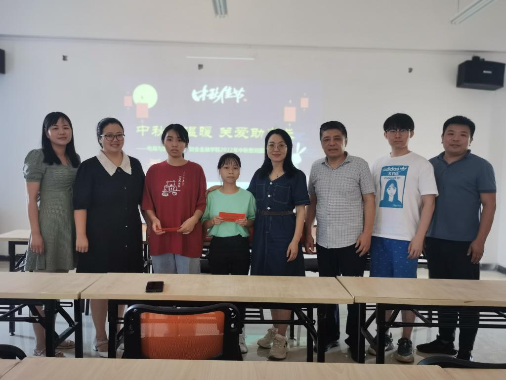 本站讯(电商与旅游学院 樊鸿儒) 中秋佳节来临之际,为进一步提升学院“资助育人”工作实效,切实推进家庭经济困难学生资助工作落细落实,电商与旅游学院、财会与金融学院于9月8日下午2点30分在博达楼A301会议室召开“中秋送温暖,关爱助成长”家庭经济困难学生代表慰问活动,校党委委员、副校长易滨秀、学院院长陈洪、学院党总支书记王玮、学院党总支副书记毕发钱看望我院家庭经济困难学生黄牙秀、王丽媛,为她们送去节日的祝福。