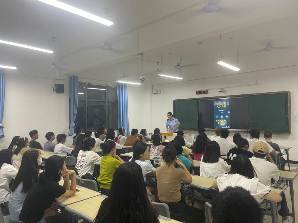 本站讯(国际教育学院 金岩)为进一步加大预防校园反诈宣传力度,最大限度保护学生财产安全,提高学生防诈骗意识,我院于9月22日晚在正心楼C203教室开展了反诈宣传教育活动,本次活动特邀学院派出所陈娟警官给同学们进行反诈宣传教育讲座,国际教育学院各班团支书以及寝室长参加。