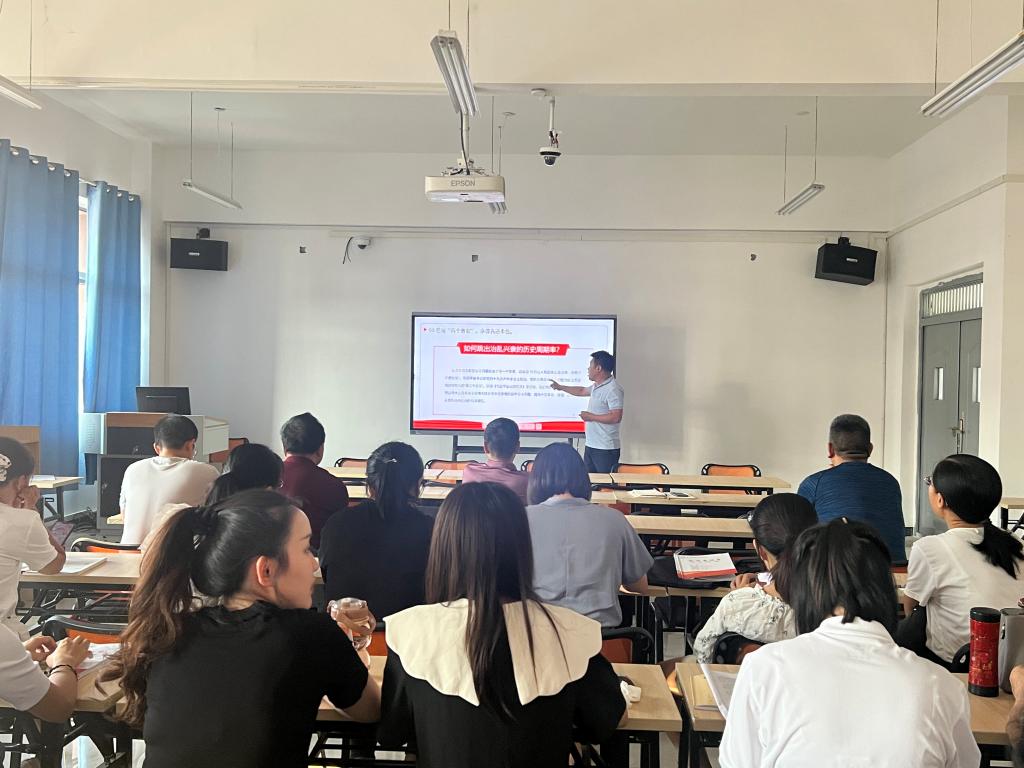 毕发钱从“把握‘两个确立’,做到绝对忠诚”;“把握‘两个结合’,坚定理想信念”;“把握‘两个大局’,坚持敢于斗争”;“把握‘两件大事’,强化责任担当”;“把握‘两个答案’,永葆先进本色”五个部分进行授课。