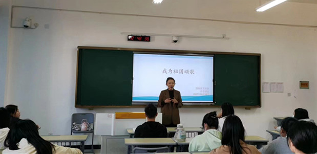 本站讯(国际教育学院 徐卫红 学生记者 周立芝)为激发协会成员的爱国热情,10月14日中午,国际教育学院外语协会将学生思想教育与专业教育相结合,在正心楼C201室举办了英文版《我和我的祖国》歌曲大赛。协会指导老师徐卫红担任评委。