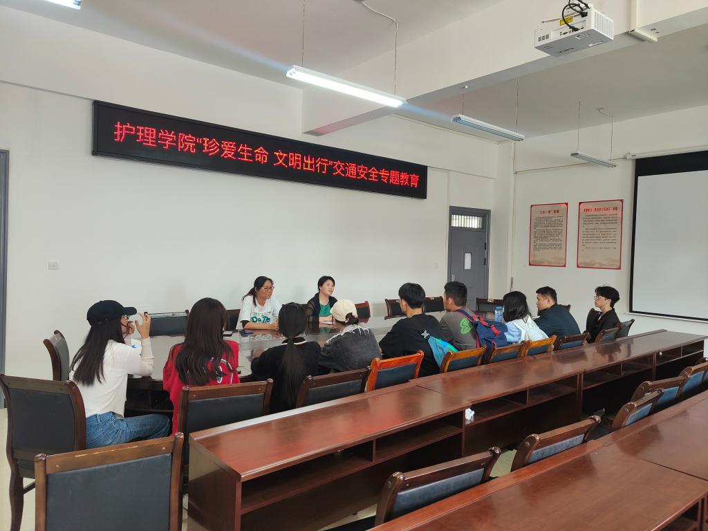 前期,护理学院已通过主题班会向同学们讲解了交通安全知识,针对同学们在校园内骑行摩托车、电动自行车等安全问题进行了重点教育。