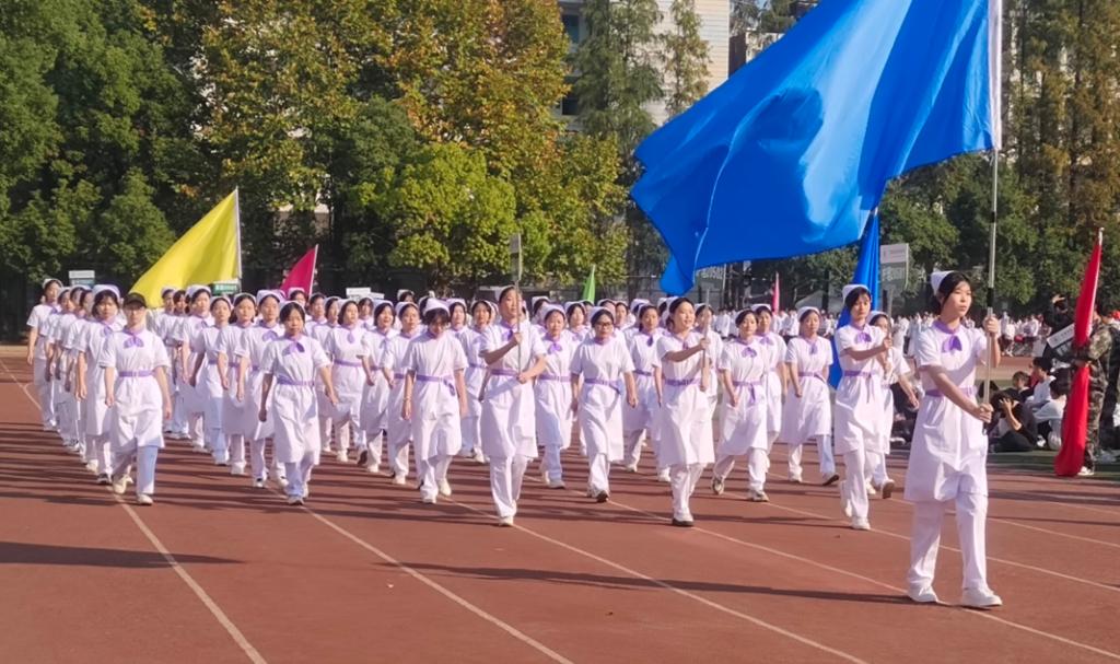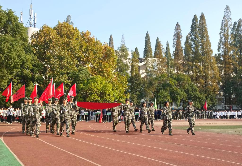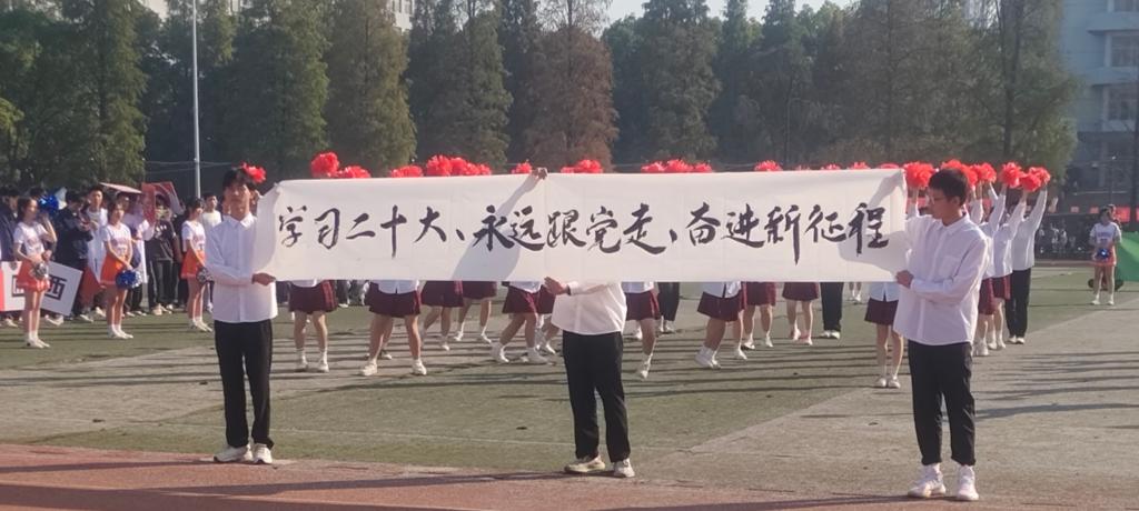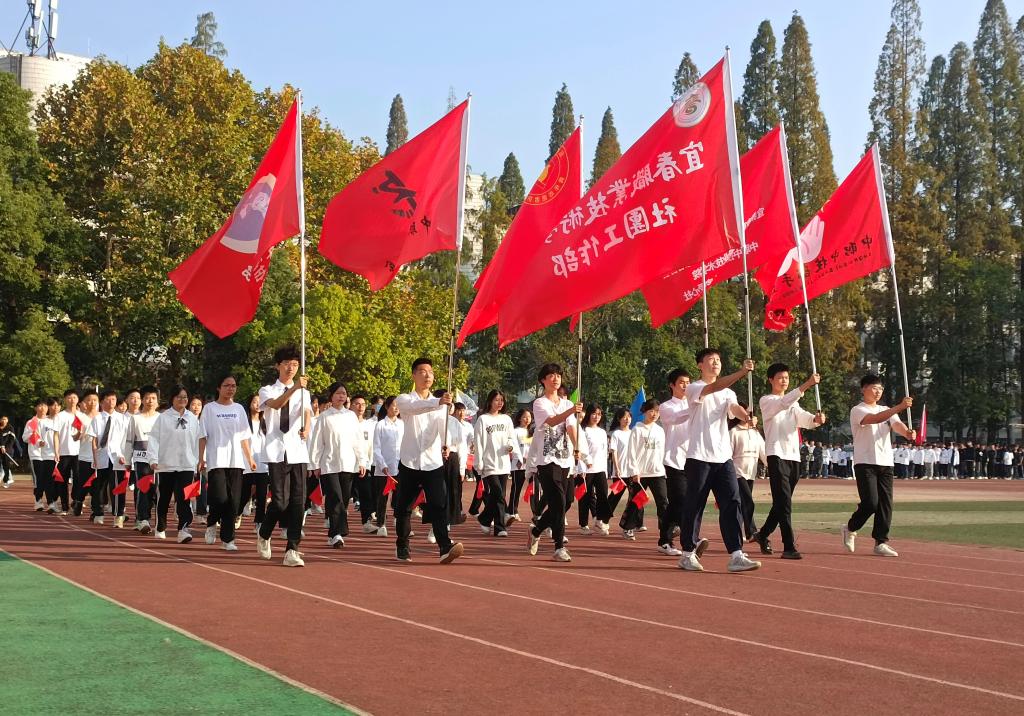 伴随着激昂的运动员进行曲,国旗队率先入场,校旗队、社团会旗队和各方阵队紧随其后。面面旗帜迎风飘扬,学生们满怀信心、昂首阔步在红色的跑道上,带着坚定与自信,像雄鹰翱翔万里晴空,如蛟龙畅游万顷碧波。