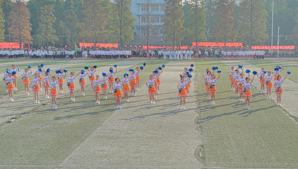 开场操《哈尼宝贝》在绿茵场上生动展现出了青春的活力与蓬勃朝气,啦啦操《加油,AMIGO》以别样的风采点燃运动激情。运动场气氛热烈高涨。