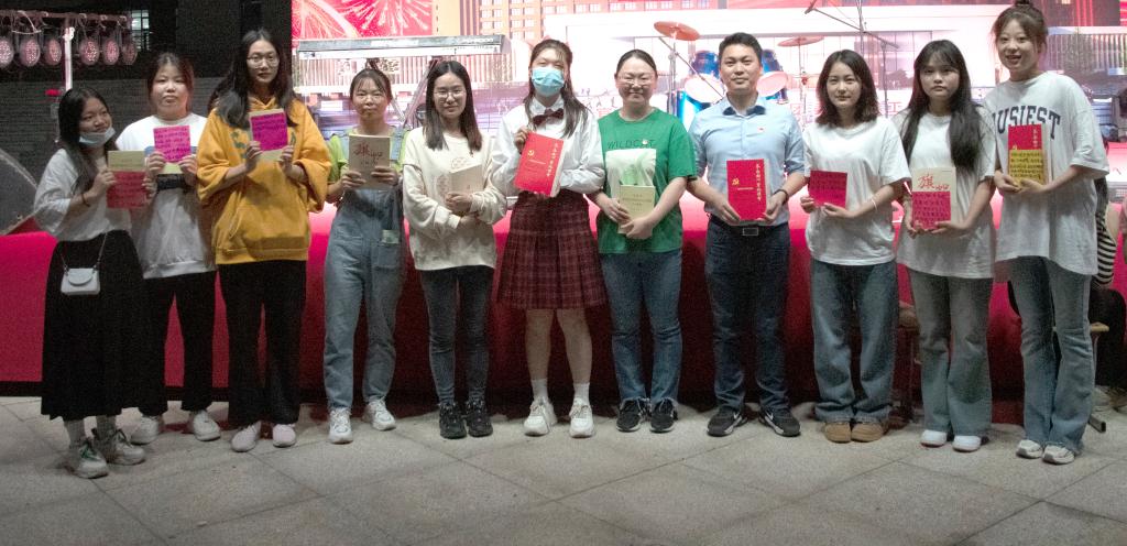 师生们在开物广场设立赠书点,宣讲党的二十大精神,赠送经典红色书籍,同时也精心准备了寄语卡片分发给同学们。在赠书的过程中,老师们鼓励学生树立崇高的人生理想,积极向党组织靠拢,努力完成人生政治思想进步的入队、入团、入党“三部曲”。同学们纷纷表示将会时刻加强学习,不断提升自我,争取早日加入中国共产党。