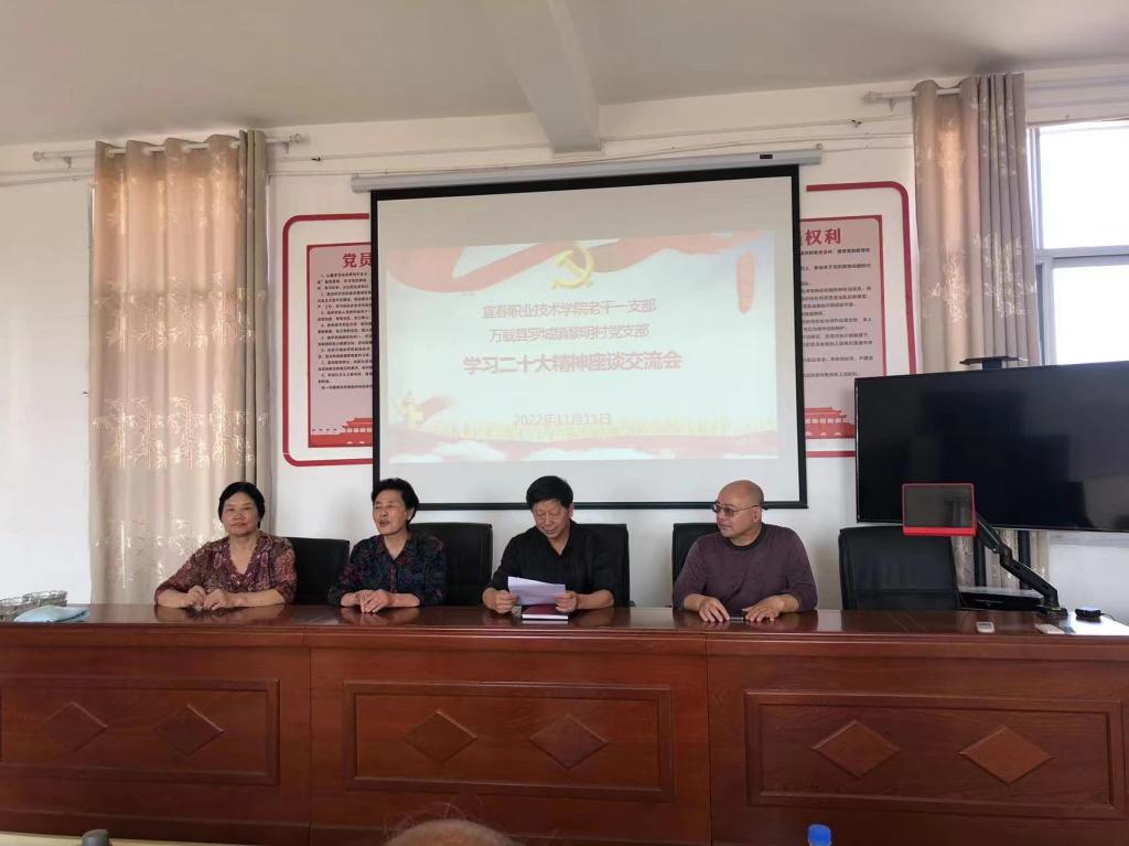 本站讯(老干一支部 伍润生)11月11日,老干一支部带领宜职老年人舞蹈队驱车到万载县罗城镇黎明村党支部一起学习座谈党的二十大精神。