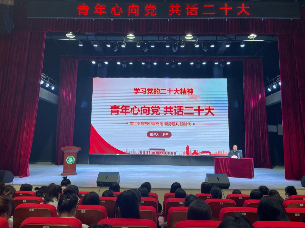 本站讯(艺术与设计学院 吴卿妍)为深入学习宣传贯彻党的二十大精神,落实习近平总书记关于青年工作的重要思想,11月21日晚,艺术与设计学院在博达楼报告厅开展“青年心向党 共话二十大”主题讲座,艺术与设计学院党总支书记罗平给全体新生授课。