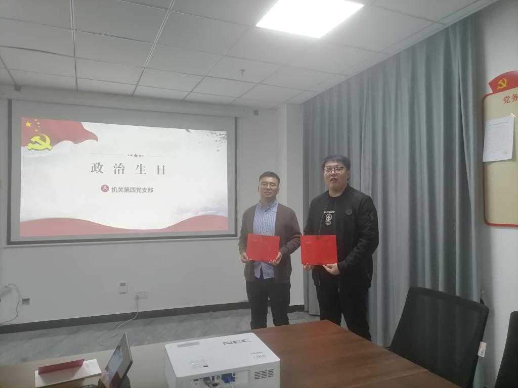 活动最后,机关第四党支部全体党员给易琦、刘念孜等党员过“政治生日”。支部书记颁发了政治生日贺卡,引导广大党员时刻牢记党员“第一身份”不忘初心、奋发有为。