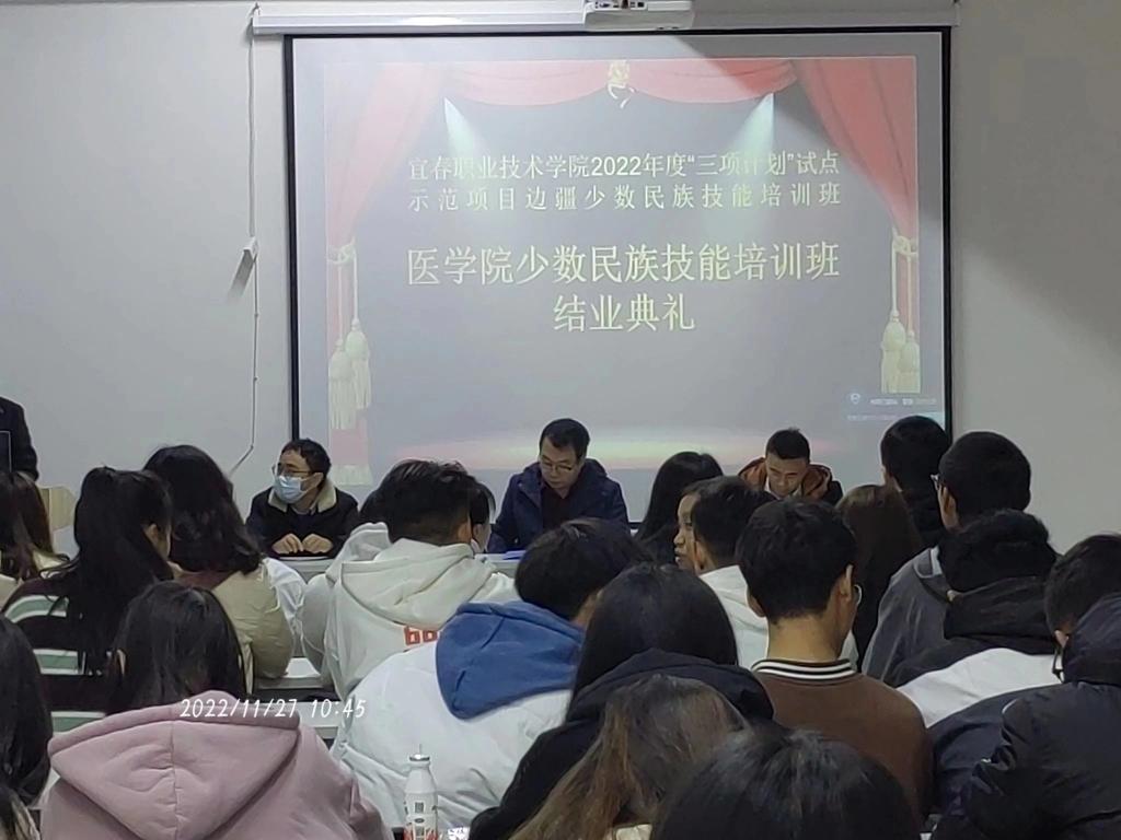 本站讯(医学院 李莫娴)11月29日,医学院举行首届少数民族职业技能培训班结业仪式。医学院(附属医院)副院长袁经永,院医务科科长李立,带教老师李翔、李鹏飞及46名学员参加。