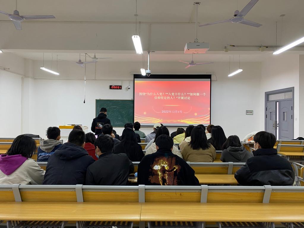学院组织发展对象和入党积极分子自学了《中国共产党章程》、党的二十大报告精神、《习近平新时代中国特色社会主义思想学习问答》等内容。围绕“为什么入党?”“入党干什么?”“如何做一个信仰坚定的人?”等问题,大家踊跃发言,彼此交流观点、分享心得,现场气氛和谐融洽,在讨论中加深自身对党的理解和认识,为争取早日成为一名共产党员打下了坚实的理论基础。