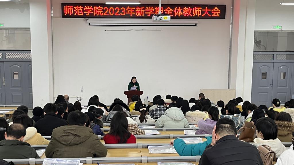 本站讯(师范学院 杜严)人勤春来早,奋斗正当时。为确保新学期各项工作有序开展,切实推进学院高质量发展,2月10日,师范学院在正心楼阶梯教室召开2023年新学期全体教师大会。学院领导班子、行政人员及全体专职教师参会。会议由院长肖勇主持。