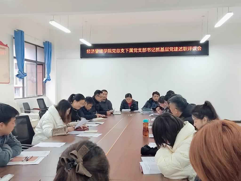 本站讯(经济管理学院 潘骁哲)根据上级党委要求,促进支部交流学习,总结上年度工作经验,2月9日,经济管理学院召开2022年度下属党支部书记抓基层党建工作述职评议会。会议由学院党总支负责人王玮主持。全体党员参加。