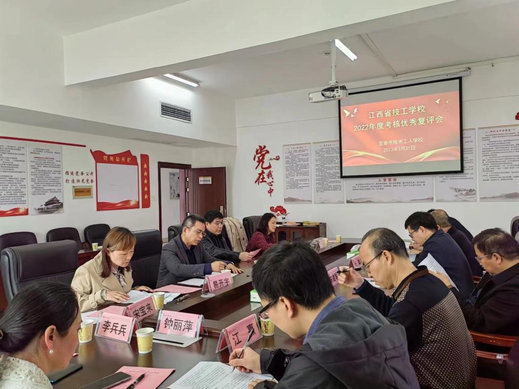 本站讯(中职中技部 钟志超)3月31日,省人社厅技工院校管理处副处长任如、省化学工业高级技工学校校长王哲、江西技师学院教务处长蔡启茂和省电子信息技师学院校长助理万军一行4人对宜春市技工学校2022年度评估优秀开展复评。市人社局党组成员、副局长陈建军,职建科科长江熹、二级主任科员钟丽萍一同复评。我校党委书记任军出席复评会,副校长张印华及中职中技部相关人员陪同复评。