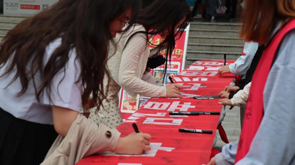活动现场展出了学院艺术教育22303、22304班同学们创作的国家安全主题漫画,由青年志愿者们向大家讲解全民国家安全教育日、安全防范等相关安全知识。一幅幅不同的国家安全漫画,不断筑牢全民国家安全意识,积极营造人人参与、人人知晓的良好氛围。同时还组织同学们在横幅上以签名的形式表示维护国家安全的决心。