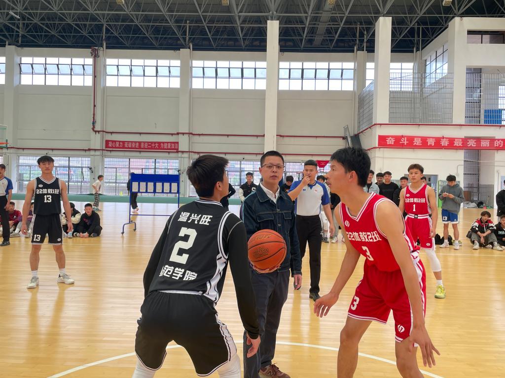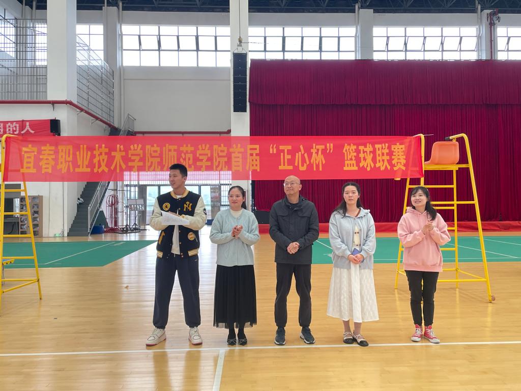 本站讯(师范学院 霍文杰 钟麒 学生记者 肖思焱)为丰富师范学院学生课余生活,增强学生的团队精神和协作能力,展现学院学子积极向上的风貌,4月27日,师范学院在鲲鹏体育馆二楼举行首届“正心杯”男子篮球联赛开幕式。院长肖勇,院团总支负责人霍文杰、教务科负责人周思昀、学工科负责人王婷、辅导员袁旭出席开幕式。
