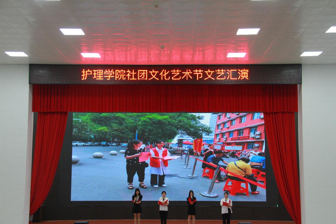 本站讯(护理学院 赖梦婷 罗佳钰)为进一步丰富校园文化,展示校园社团风采,5月15日,护理学院在仁济楼礼堂举办社团文化艺术节文艺汇演。院长吴少林、团总支书记刘小三、辅导员陈丽红、教务科张越与学生代表一起观看演出。