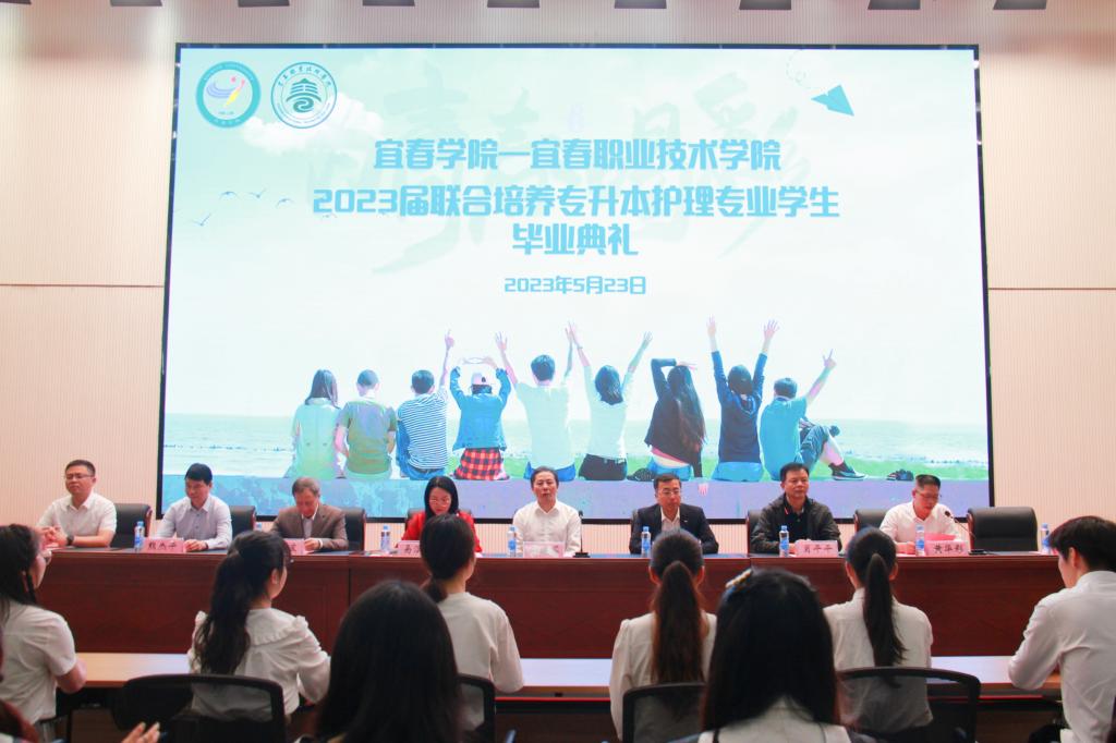 本站讯(护理学院 刘小三)青春逢盛世,奋进新百年。5月23日,宜春学院、英国上市公司365在学术报告厅隆重举行2023届联合培养专升本护理学专业学生毕业典礼。宜春学院党委委员、副校长李建军,教务处副处长肖平平,医学院院长易少波,学工处副处长黄华彩;英国上市公司365党委副书记、校长邱军,党委委员、副校长易滨秀,教务处处长熊杰平,学工处处长谢海英,护理学院院长吴少林,教师代表及2023届联合培养专升本护理专业全体学生出席典礼,典礼由易滨秀主持。