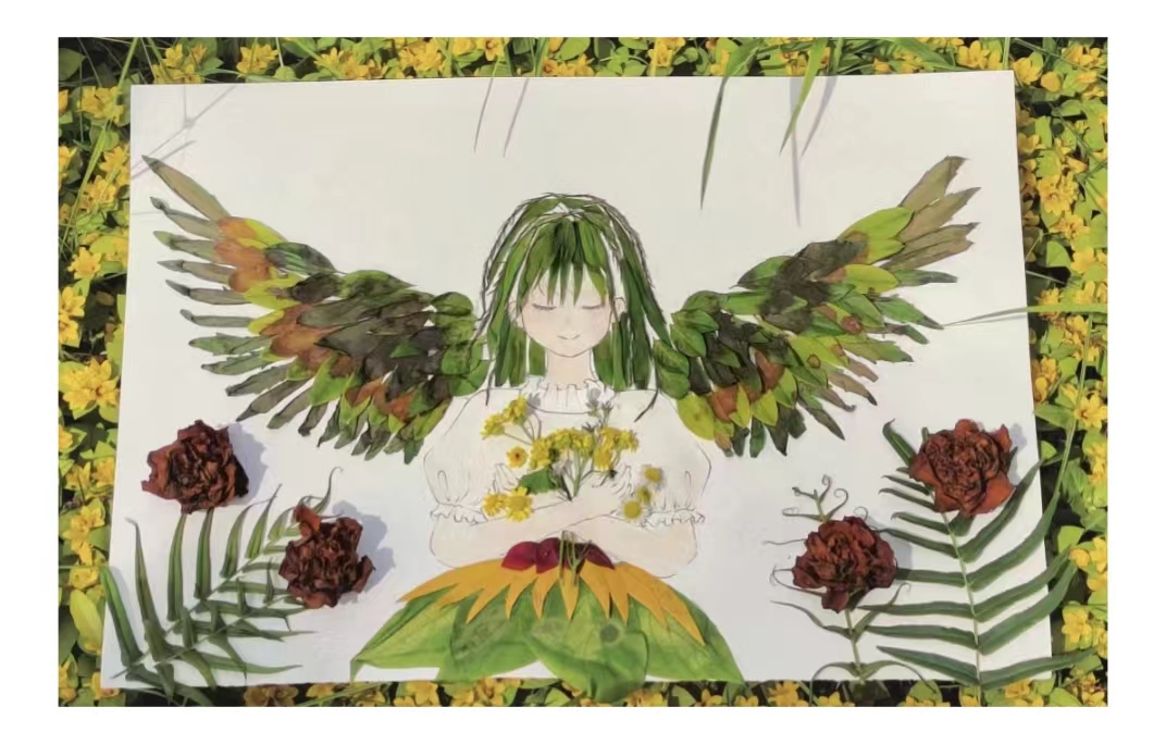 活动过程中,同学们一起在校园感受春夏花草的景色,以花为媒,以画话心,与自己的内心对话,利用校园里的落花、落叶等大自然的材料,打开思维,发挥想象,制作成了一幅幅美轮美奂的创意贴画作品。同学们的作品,有的表达了对于亲情、友情、爱情的感悟,有的表达了对祖国的热爱之情,有的表达对于大自然的热爱,有的表达了对于人生的思考。
