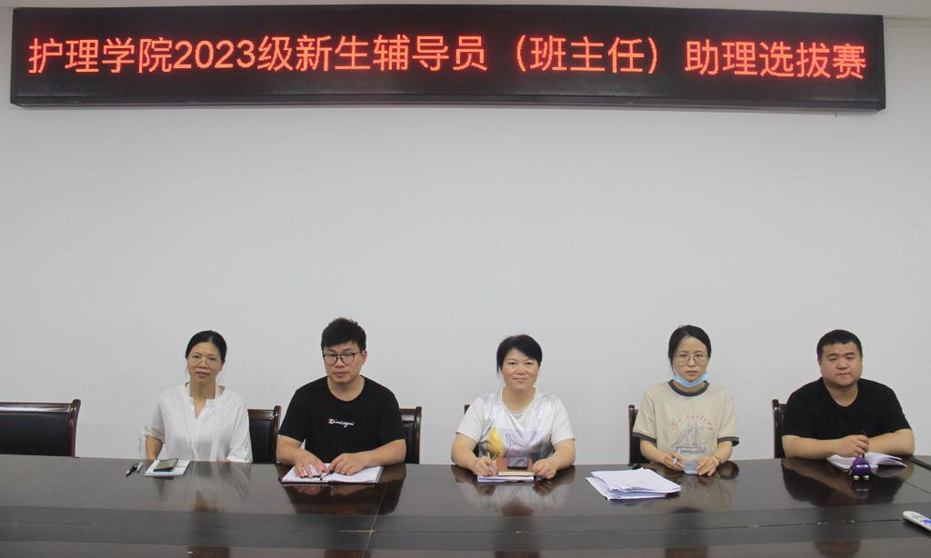 本站讯(护理学院 赖梦婷)为更好服务2023级新生,积极引导新生的学习和生活,6月19日,护理学院在和济楼C218开展2023级新生辅导员(班主任)助理选拔赛。党总支书记胡蓉、团总支书记刘小三、学工科科长胡祖昌,辅导员曹云、彭琪玉出席并担任评委。