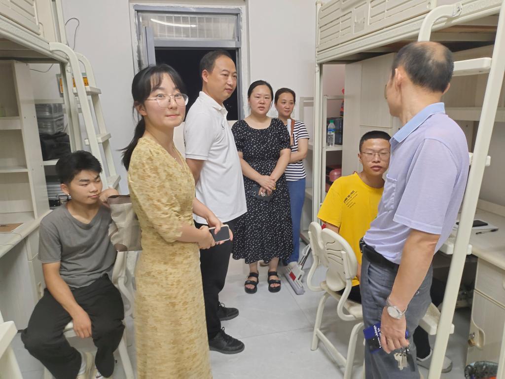 走访过程中,学院领导老师与同学进行亲切交流,详细询问新生们对新环境的适应情况,耐心细致地回答学生的问题,并鼓励同学们尽快适应大学生活,加强身体锻炼和知识学习,做德智体美劳全面发展的新时代大学生。与此同时,领导老师还殷切地叮嘱同学们居住在同一个屋檐下要相互包容交流,互帮互助,建立良好和谐的同学关系。在欢声笑语中,来自老师们的亲切关怀和谆谆教导铭记于同学们的心中。