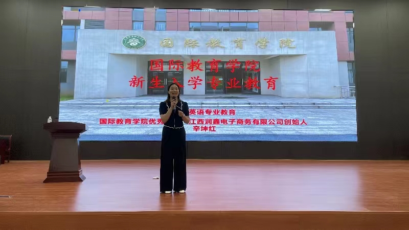 辛坤红不仅是一名电子商务师,更是江西润鑫电子商务有限公司创始人、总经理。她首先分享了自身的经历和心路历程,接着与现场的同学们互动,答疑解惑,为学生将来的专业知识学习与职业生涯规划指明方向。最后,辛坤红向学校和师生表达由衷的祝愿,祝福母校20周年校庆生日快乐,祝福母校人才辈出、越办越好、再谱华章。