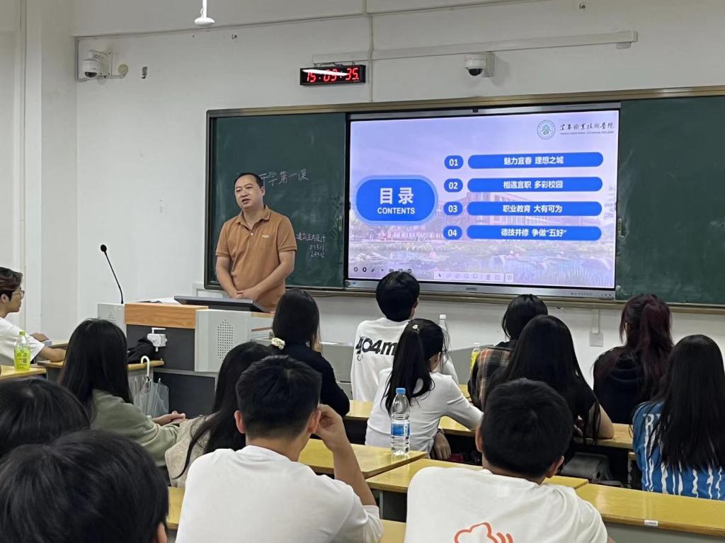 新生开学第一课和专业思想教育则是这一系列活动的重要部分。学院以“开启新征程 争做‘五好’宜职新青年”为主题,为新生们提供一个独特而激动人心的学习和交流平台。邀请各班教导员包括党总支书记罗平、院长黄卉、副院长付菲、党总支副书记兰七荣和各班专业老师为新生讲课,他们分享了自己的职业经验和学习心得,激励新生们积极进取,追求卓越。同时,学院还组织了一系列的工作坊和互动活动,让学生们亲身体验艺术与设计的魅力,鼓励新生们要勇敢追求自己的梦想,努力学习,锐意创新,不断提升自身的专业素养和实践能力。