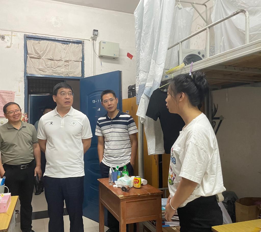 在学生宿舍,任军与学生亲切交谈。“搬迁南校区的宿舍后,大家住得习惯吗?”“平时学习生活上有哪些困难?”“对学校有哪些意见建议?”校领导的关心让同学们备受鼓舞,大家放下拘谨,倾诉自己学习中的体会、生活上的建议。校领导及技校相关人员就同学们反映的学习、生活等方面问题一一解答。