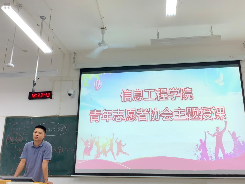 本站讯(信息工程学院 黄彪 易文意 学生记者 李金泽)为进一步推动社团发展,持续加强学生社团建设管理,9月18日晚,信息工程学院青年志愿者协会在和济楼C302开展“社团管理”主题授课,本次授课诚邀黄彪老师主讲,全体协会成员参加。