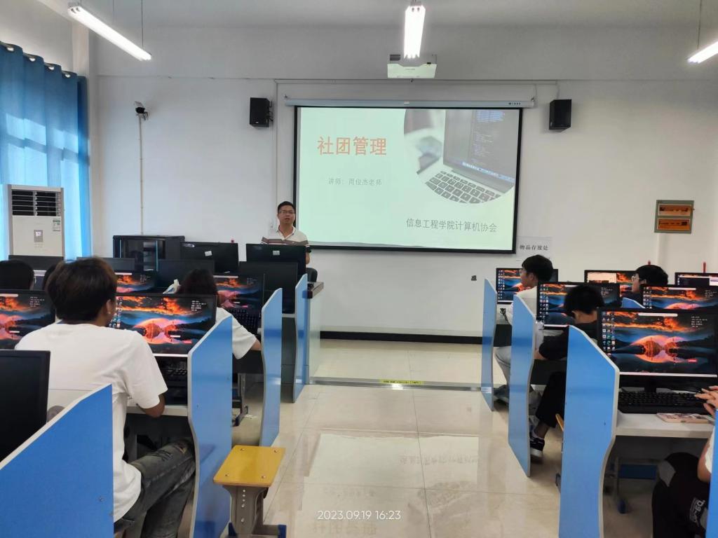 本站讯(信息工程学院 易文意 黄彪 学生记者 易幼婷)为持续加强学生社团管理,进一步推动社团发展,9月19日,信息工程学院计算机协会邀请社团指导老师周俊杰在智云楼A502开展社团管理主题授课。