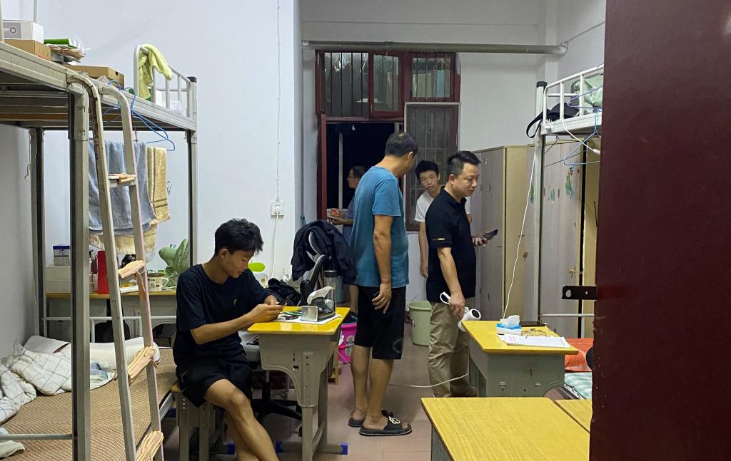 9月19日晚,工作组分成7组,分别由技校班子成员及科室负责人带队,对照排查范围、排查内容开展“大排查、大整治”专项行动,重点排查梳理学生宿舍存在的安全隐患,并要求对发现的安全隐患问题尽快整改,确保校园安全稳定。