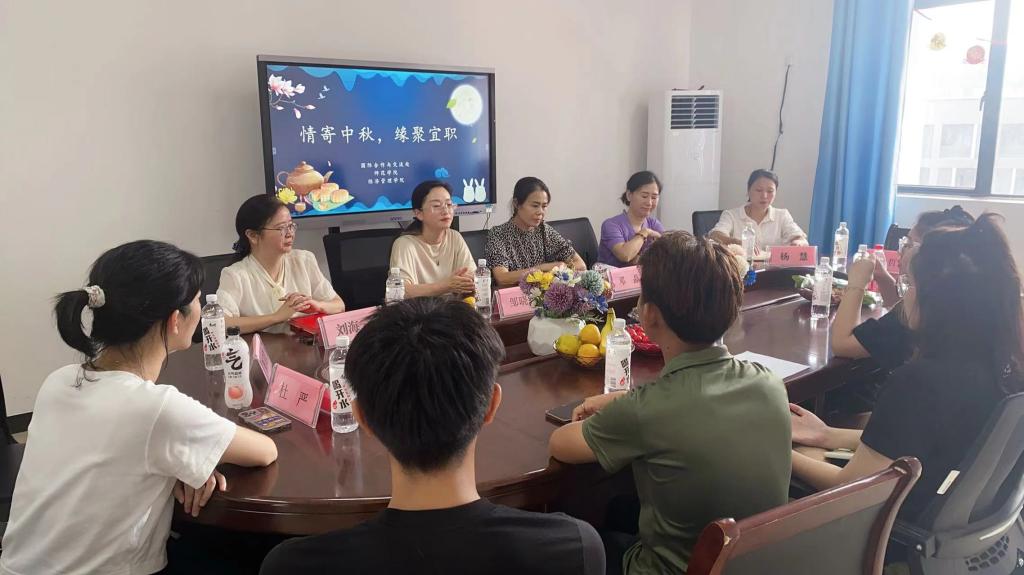 本站讯(国际合作与交流处 杨慧)在中国传统佳节中秋节即将到来之际,9月28日中午,国际合作与交流处在博达楼501会议室组织开展“情寄中秋、缘聚宜职”留学生中秋节座谈会。国际合作与交流处处长刘海云、副处长杨慧,师范学院党总支书记邹晓英,经济管理学院党总支邓晶,教师代表及全体在校留学生参加了座谈会。