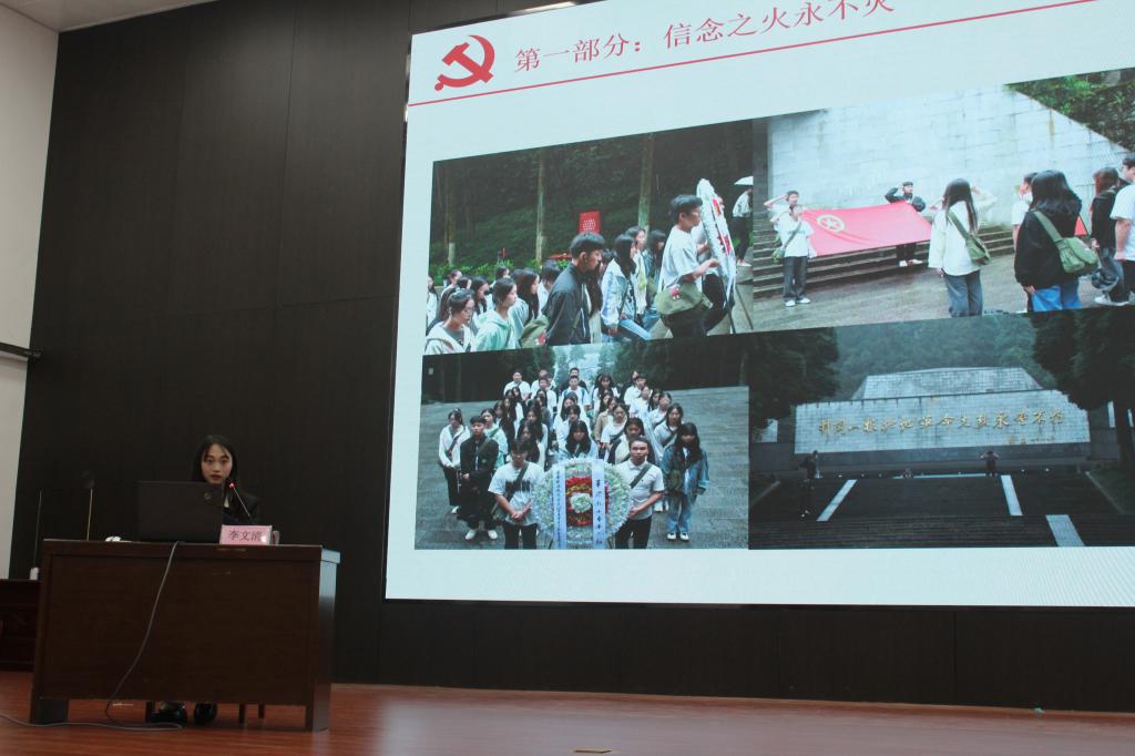 9日晚,青马班优秀学员代表李文清以井冈山革命发展历程、宜职师生井冈山研学活动视频引入主题,通过信念之火永不灭、实事求是闯新路、艰苦奋斗攻难关、依靠群众得胜利四个部分讲述井冈山精神的精髓、核心内容、重要内容及根本。并带领同学们深入了解井冈山革命故事与情怀,重温峥嵘岁月,领略波澜壮阔的伟大历程,鼓舞同学们在认识自身的历史使命中承担自己的责任,探寻继承发展之路,学习革命先烈艰苦奋斗的品质与作风,以史为鉴,铭记革命先辈,让井冈山精神永放时代光芒。