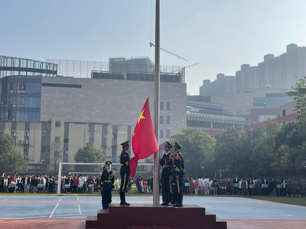 国旗护卫队们昂首挺胸,迈着整齐有力的步伐,护送着鲜艳的五星红旗一路向前。裁判员方阵、运动员方阵紧随其后,他们面带笑容,挥舞着国旗。工作人员方阵戴着工作牌入场。随后,汽修23J01班和机电23J01班联合方阵、计应23J01班和数控23J01班联合方阵、电商23J01班和烹饪23J01班联合方阵陆续入场。