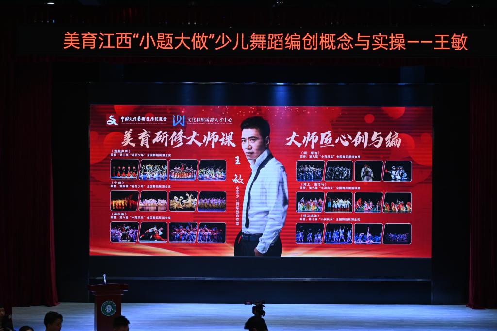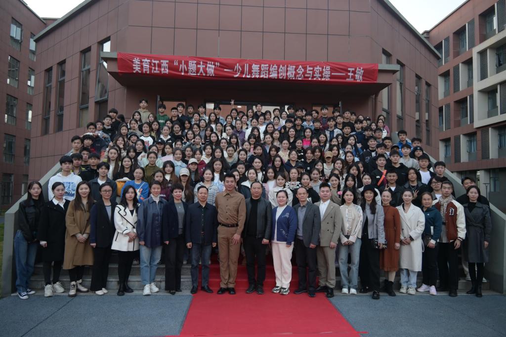 本站讯(艺术与设计学院 彭海艳)为积极响应中国共产党二十大关于教育改革工作的新思路,为美育从业者们提供专业素养提升的指导和舞蹈美育资源共享,共同助力江西舞蹈美育高质量发展,11月20日,少儿舞蹈艺术教育家王敏在博达楼艺飞扬剧场开展美育研修大师课——《美育江西“小题大做”少儿舞蹈编创概念与实操》。