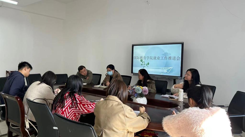 本站讯(国际教育学院 郭学琪 伍慧娟)为深入贯彻落实党的二十大精神,学习贯彻习近平总书记关于就业工作的重要论述,落实“稳就业,保就业”要求,更好地为2024届毕业生提供就业指导服务,11月24日,国际教育学院在博达楼B501开展就业工作推进会。本次会议由院党总支书记刘海云主持,院长王玮、副院长杜欣宇、学团负责人刘嘉妮、就业干事郭学琪及毕业班班主任参加。