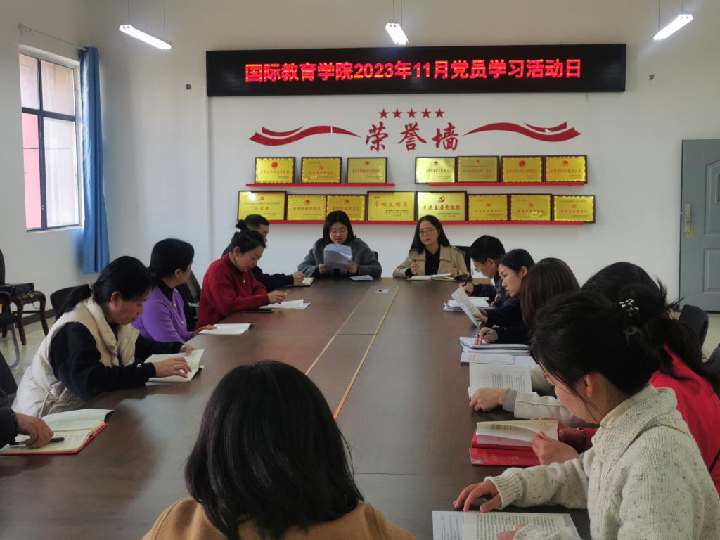 本站讯(国际教育学院 刘洋倩)为扎实开展学习贯彻习近平新时代中国特色社会主义思想,紧扣“学思想、强党性、重实践、建新功”的总要求,11月28日下午,国际教育学院党总支在博达楼党员活动室召开十一月党员学习活动日活动。活动由统战委员王玮主持,全体党员参加。