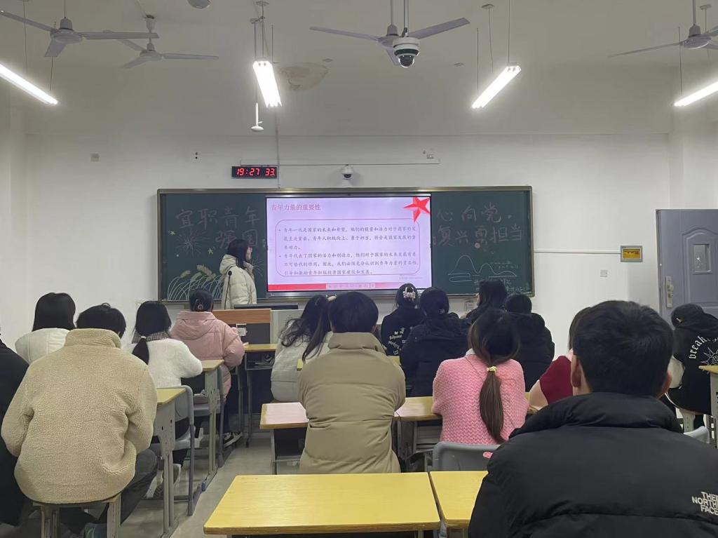 本站讯(经济管理学院 刘丽艳)为贯彻党的二十大精神,培养学院青年学子爱国精神和社会责任感,12月5日晚,经济管理学院在正心楼组织开展“宜职青年心向党 强国复兴勇担当”主题团日活动。