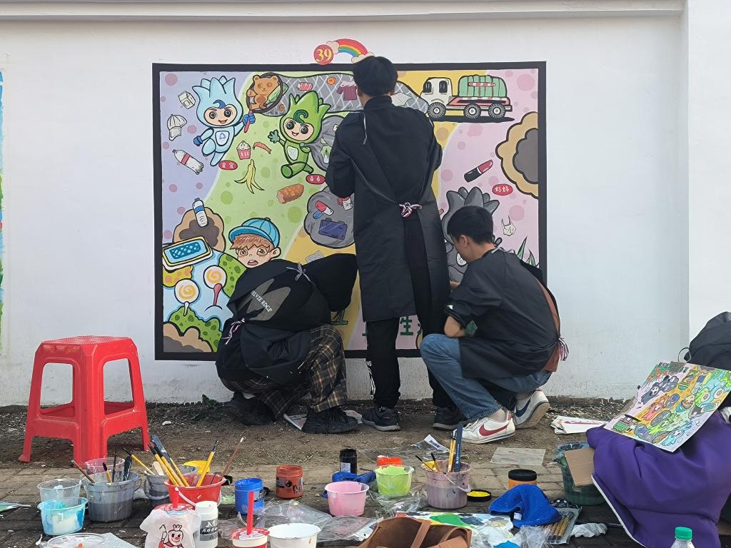 本站讯(艺术与设计学院 郭晶)为让垃圾分类渗透到居民的日常生活中,积极创新宣传方式,增强新时代青年对于垃圾分类的理解,12月7-8日,艺术与设计学院党员教师郭晶带领郭雨晴、肖煌生、秦涛、龚佳莉4名同学参加由宜春市教体局举办的“宜春市生活垃圾分类主题墙体绘画大赛活动”。