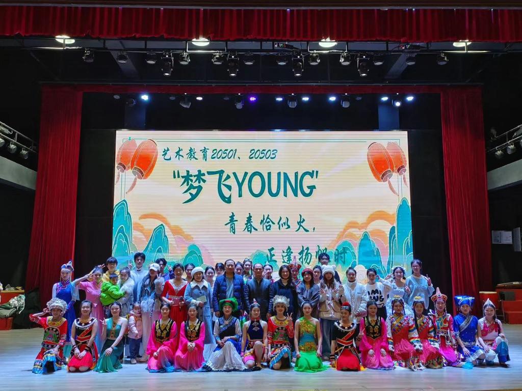 本站讯(艺术与设计学院 彭海艳 学生记者 邓晶晶)为丰富校园生活,促进大学生综合素质的全面提高,12月15日晚,艺术与设计学院在博达楼演艺厅举办“梦飞young”艺术教育20501班、20503班周末晚会。党总支书记罗平、党总支副书记兰七荣、副院长付菲、教师陈瑜、王安琪与300学子共同观看演出。