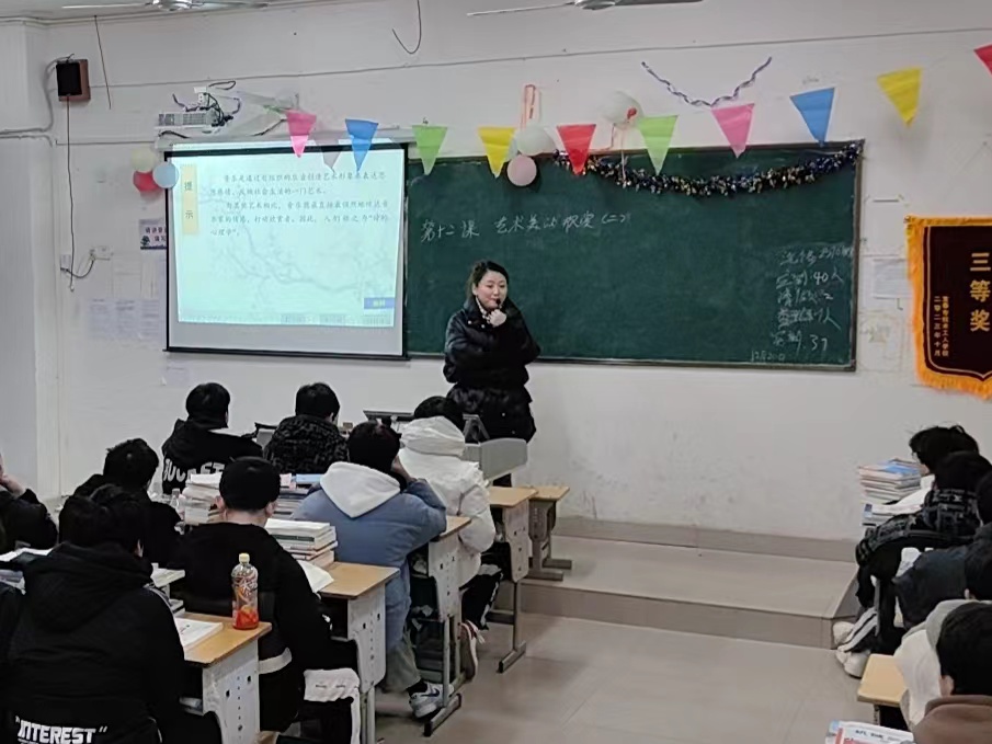 彭怡和梁钰讲授的科目均为《美育》。彭怡带着学生欣赏音乐《梁祝》《月光奏鸣曲》《红楼梦序曲》等,从音乐的概念、分类及构成要素各方面来体验音乐之美;还带领学生欣赏了不同类型的舞蹈和戏剧,熟练运用多媒体等教学设备播放图片、音频、视频,让学生身临其境的感受艺术之美。梁钰则从书法的角度,通过展示各类名家作品让学生感受到篆书、隶书、楷书、草书的不同书写风格,陶冶学生情操。课堂通过听大师朗诵,让学生感受中国书法的博大精深。最后让学生自己练习书法,学以致用,巩固吸收当堂学习的知识。