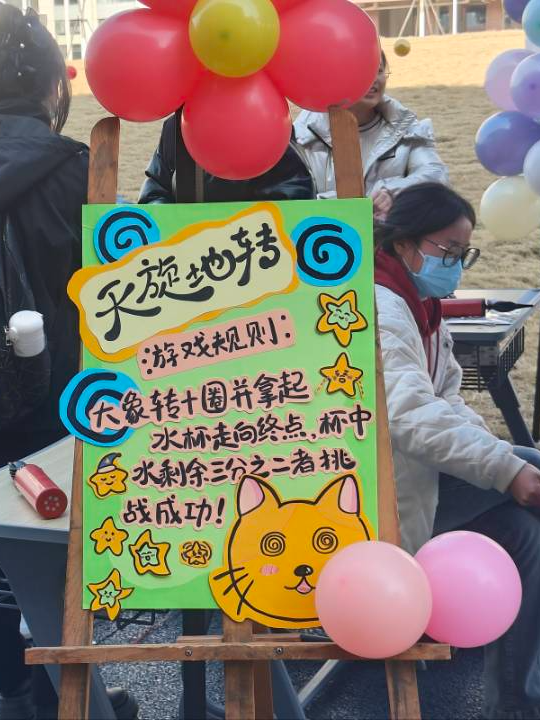 现场众多游戏异彩纷呈,有天旋地转、投壶传统、你争我抢等趣味横生的游戏。外语协会猜字谜游戏让同学们在猜谜的过程中了解中国古代的历史和传统。新颖的互动游戏、精美的小礼品激发了师生们对游园活动的参与热情,大家踊跃参与,收集印章兑换奖品。