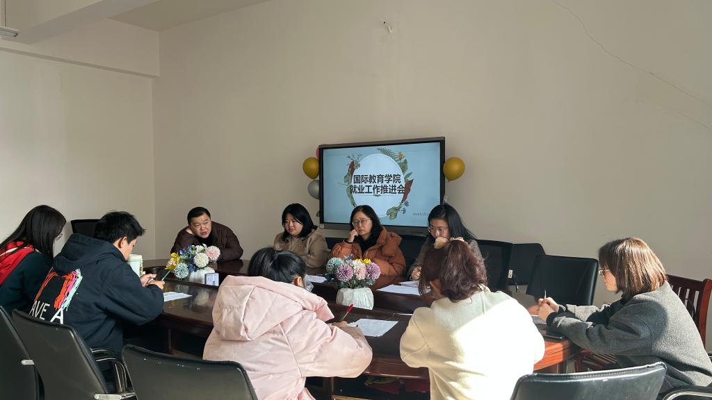 本站讯(国际教育学院 郭学琪 王昭敏)为全面贯彻落实党中央、国务院、省教育厅、学校党委对2024届毕业生就业创业工作的决策部署,实现毕业生更充分和更高质量就业,1月3日,国际教育学院在博达楼B501召开就业工作推进会,学院班子成员、就业干事郭学琪及毕业班班主任参加,王玮院长主持会议。