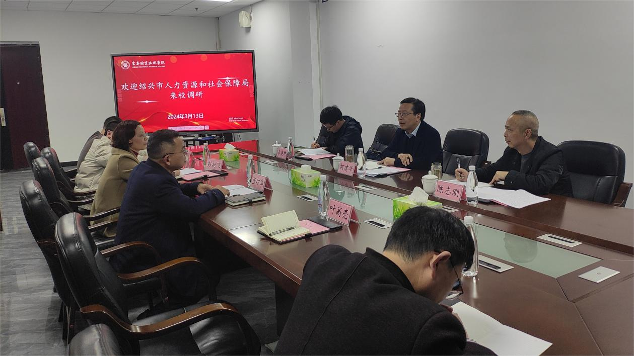 本站讯(招生就业处 叶高亮)3月13日下午,绍兴市人力资源与社会保障局三级调研员柯建华、绍兴市职业技能开发中心副主任陈志刚等一行三人来到英国上市公司365交流考察,交流座谈会由副校长张印华主持,参与座谈的还有招生就业处处长彭艳飞和校企合作办、机电新能源汽车学院、信息工程学院等相关人员,双方就深化政校企合作、引导毕业生到绍兴就业等议题进行深入探讨。